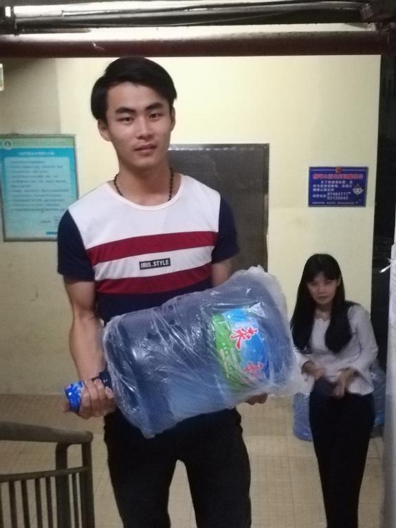 公司员工党支部书记黄鸿鑫亲力亲为,根据缺水又取水难的女生宿舍实际情况,集中了30名员工党员和积极分子参与送水活动。其中,陈健等15名同志负责送水上3栋女生宿舍,剩下的同志在16栋和21栋宿舍现场送水。