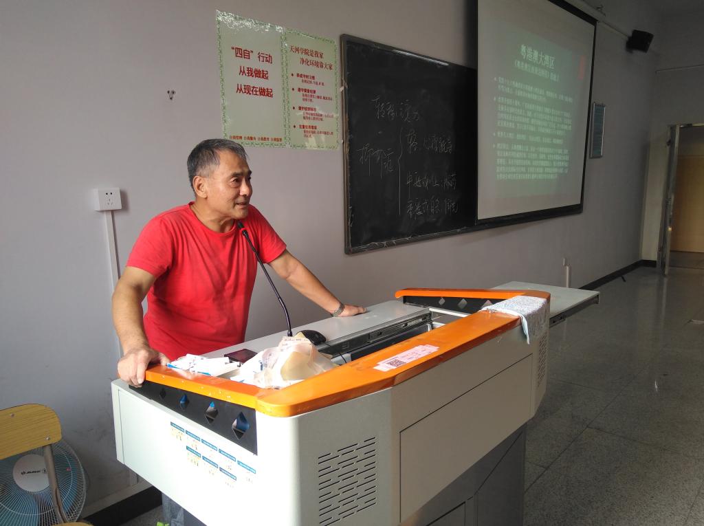 原峰山经理的第一课是面向18软件1班、18软件2班和18大数据班共138名同学讲授。原经理从我们公司所处的宏观环境出发,做了主题为《粤港澳大湾区》的宣讲,让同学们了解粤港澳大湾区发展战略。课堂中,原经理分析了《粤港澳发展规划纲要》的主要内容,粤港澳大湾区指的是由广州、深圳、珠海、佛山、惠州、东莞、中山、江门、肇庆9市和香港、澳门两个特别行政区形成的城市群,这些地区从此前的“深化合作”走向了“全面推进”。粤港澳三地提升合作发展水平,因为建设大湾区再一次迎来更大的历史机遇。原经理引申出世界其他几个大湾区的一些现状,分析目前我们员工所处的社会大环境,预估粤港澳大湾区将成为中国乃至世界经济最为活跃,科技水平领先的区域之一。他指出目前科技发展特别是人工智能技术将使生活方式带来革命性的改变,由于科技的快速发展优先在大湾区推进,将会给同学们带来更多的机遇与挑战,经理结合公司计算机科学类的专业知识和培养人才的方向分析,告知有更大可施展的空间,鼓励同学们必须不断地学习,抓住机遇。