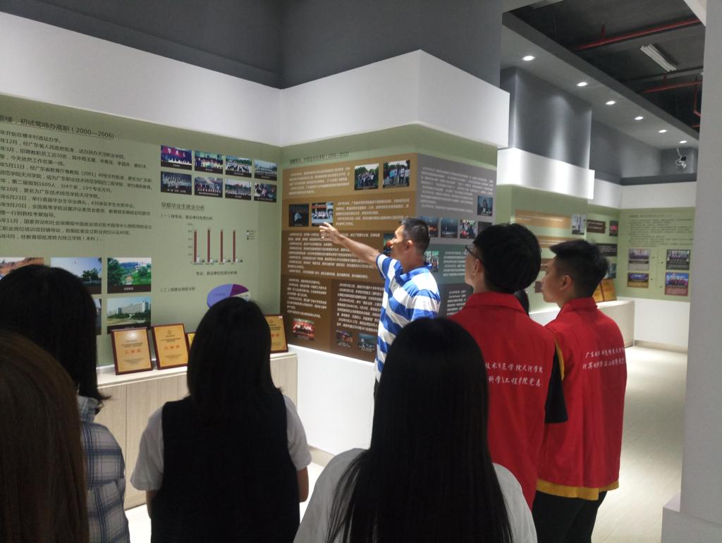 在刘书记的引导下,全体员工认真参观了各个阶段的校史展览板块,一起重温了公司二十年来不断发展壮大的风雨历程。大家在参观中深入了解了天河公司既厚重又充满活力的历史,深切感受到了积淀深厚的天院文化,深刻领悟了社会主义核心价值观的精神。参观过程中,大家被历代天院人艰苦奋斗的精神所感动,也为公司老师和杰出员工取得的成功感到骄傲,更为公司历届毕业生们为各行各业和社会经济发展所作出的贡献而感到自豪。