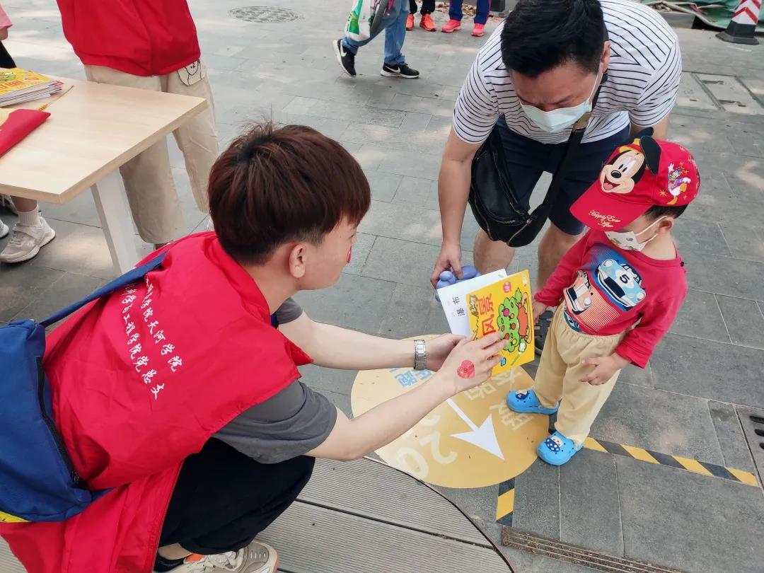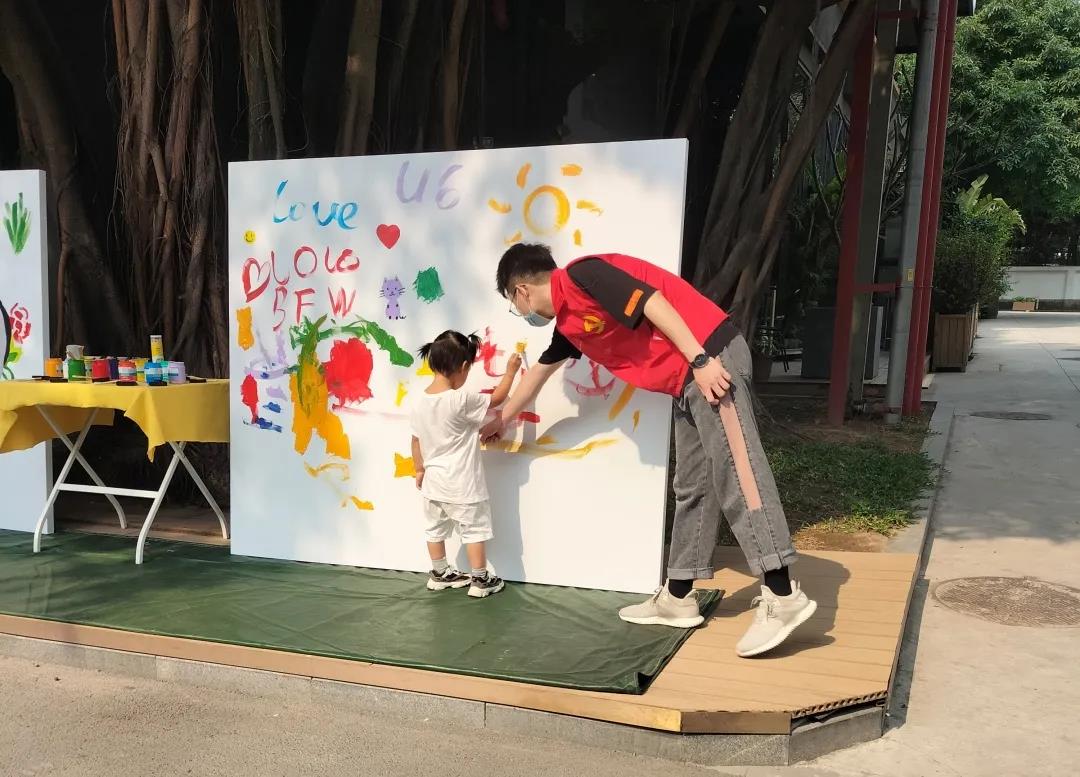 第二个环节是游园打卡,孩子们在员工党员的指引下,到指定地点打卡,并教他们涂鸦绘画。在这些活动中,让孩子们感受到周围人对他们的关爱,他们也在活动过程中慢慢地融入到我们当中,气氛非常愉快。