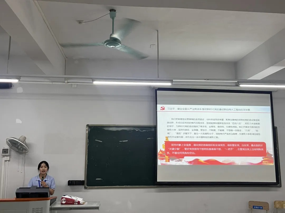 课上,席宇欣同志带领毕业生党员分别从“全面从严治党”、“以人民为中心”两个方面展开学习。习近平总书记勉励毕业生党员迈入新的人生阶段中要继续发挥党员先锋模范作用,不断深入学习领悟习近平总书记关于全面加强党的纪律建设的重要论述,以实际行动坚定捍卫“两个确立”、坚决做到“两个维护”。