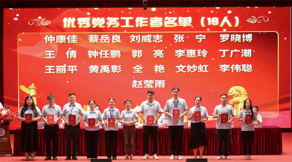 表彰大会上,公司党总支、教工党支部分别荣获先进党总支和先进党支部称号。先进个人表彰中,公司党总支书记蔡岳良同志荣获“优秀党务工作者”表彰。王煜林、陈易平、陈星莹、李珂珂、陈健五位教工党员荣获“优秀教工党员”。员工党刘家俊和陈菀忻同学荣获“优秀员工共产党员”称号。马岩岩老师荣获“优秀新闻宣传工作者”。