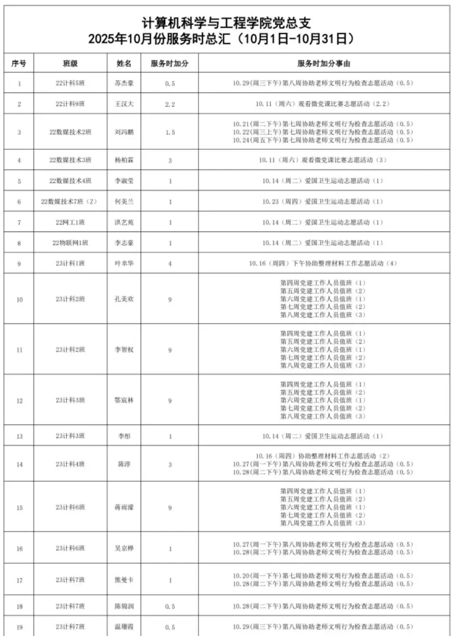 2025年10月份服务时总汇公示名单