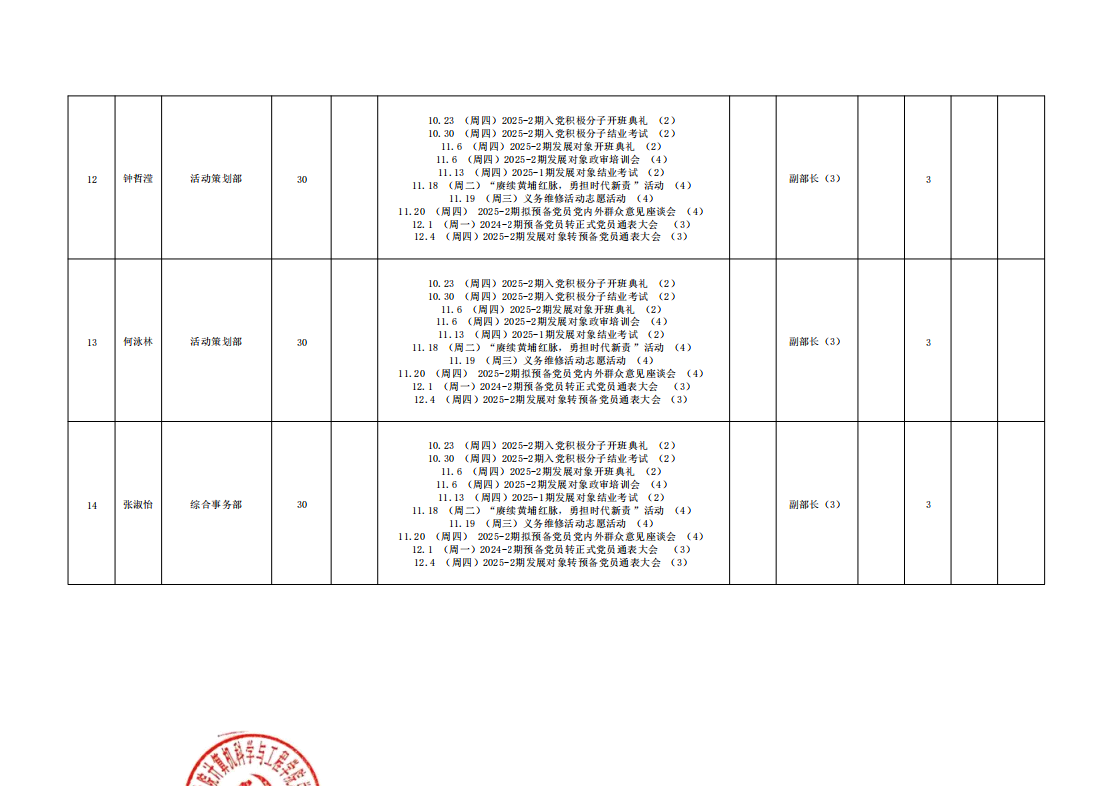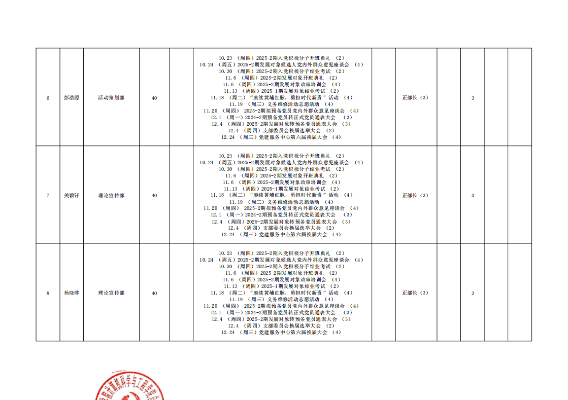 根据公司相关工作规定,经员工个人申报、公司审核,现将公司2025-2026学年第一学期公司参与党建志愿服务的同学的综合评测结果予以公示,具体情况公示如下。