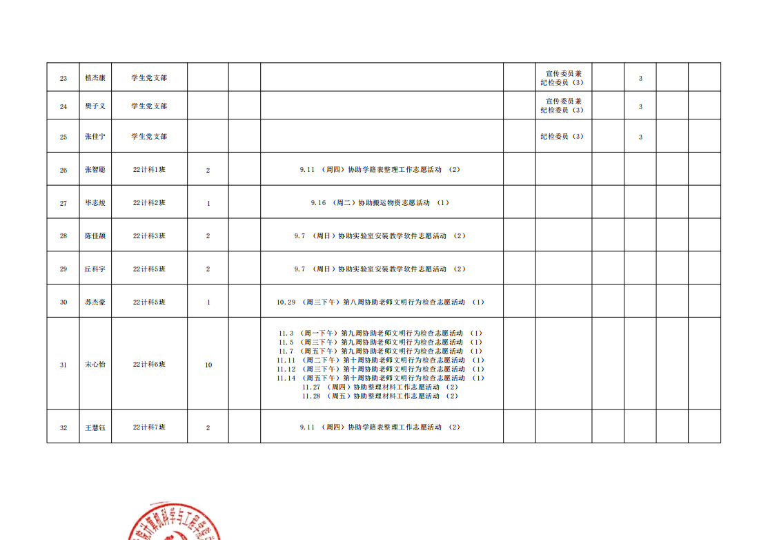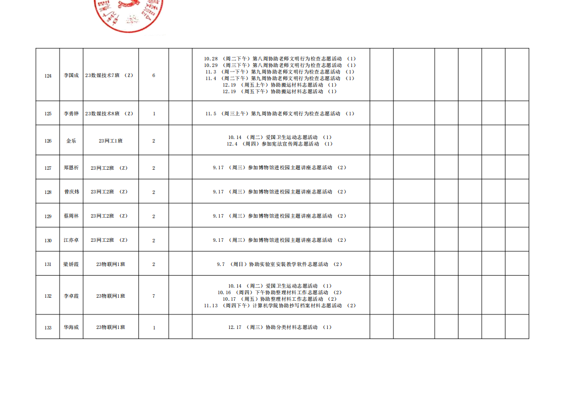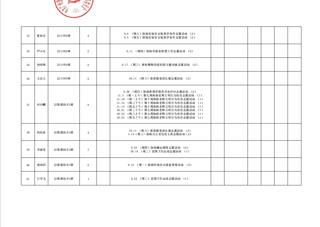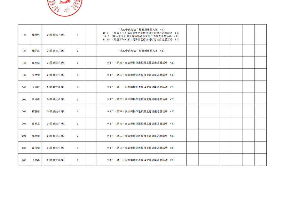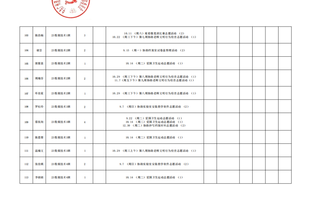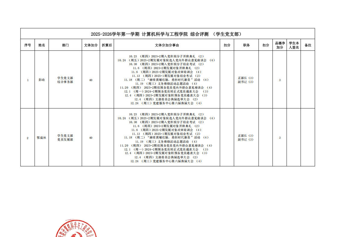本学期公司组织开展的各项志愿活动,其对应的综合测评文体分核算工作已顺利完成,现面向全体同学公布最终结果。同时,根据公司综合素质测评相关规定,现对其中参与党建志愿服务的同学进行综测文体分认定,具体规则如下: