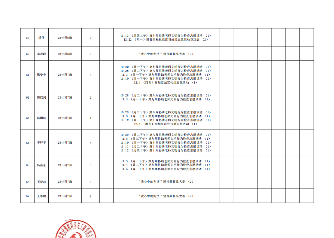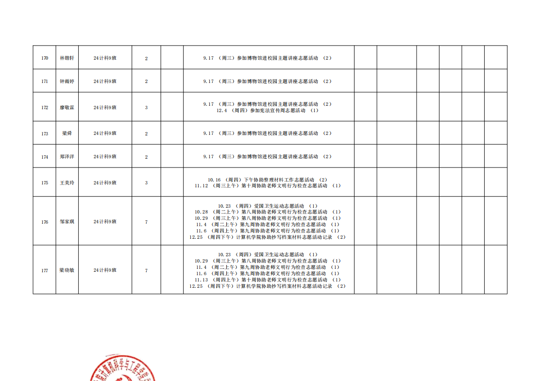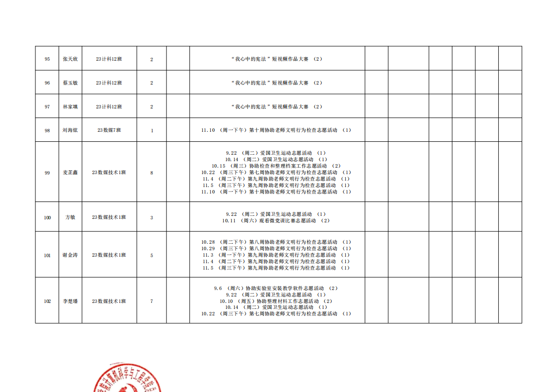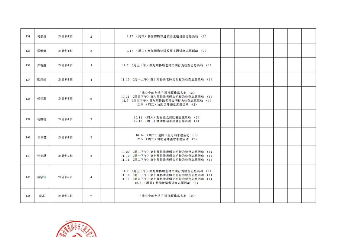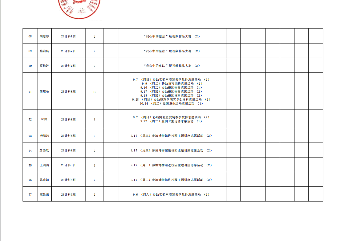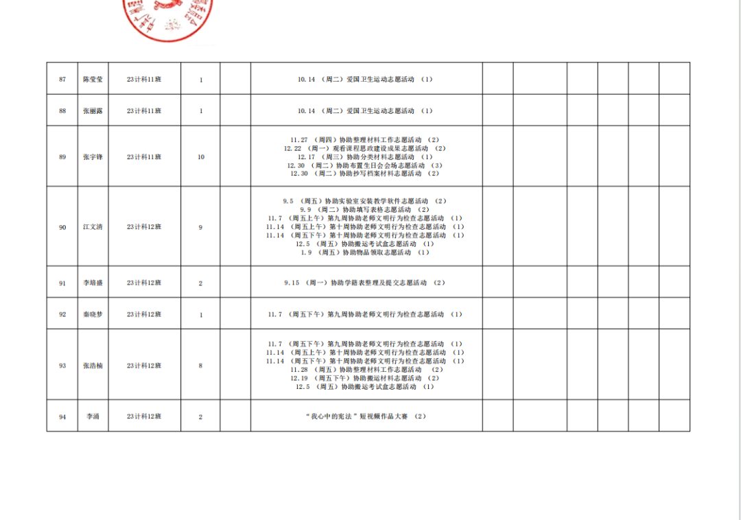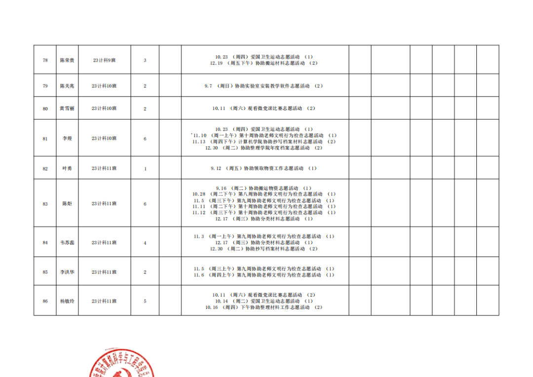 在此特别提醒:本学期综合测评加分项目为公司党建服务中心官方发出的志愿活动,其他情况不予加分认定与换算。