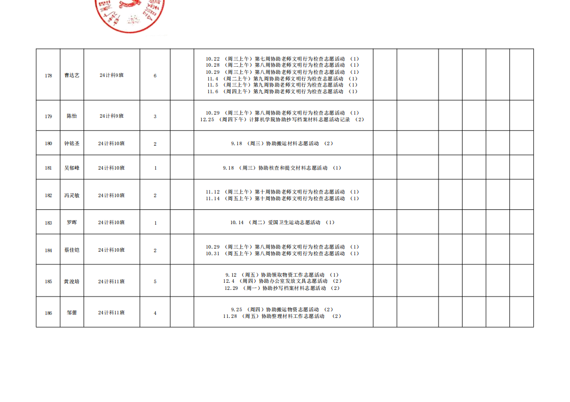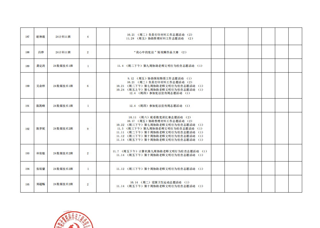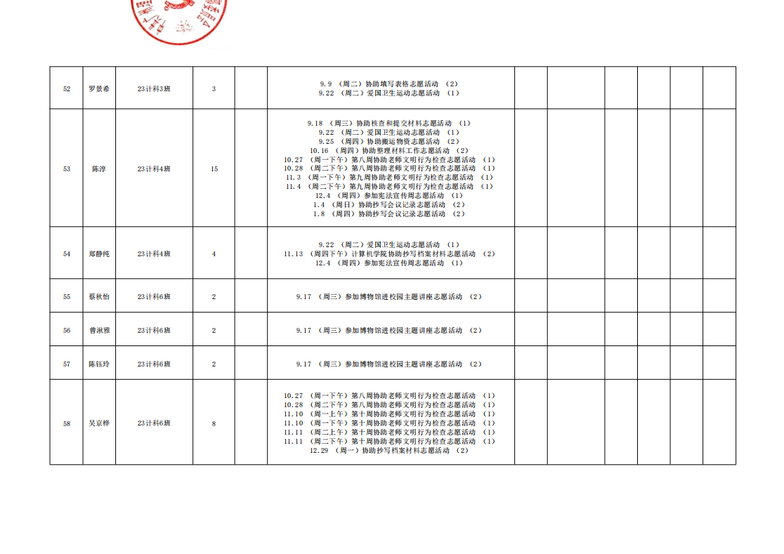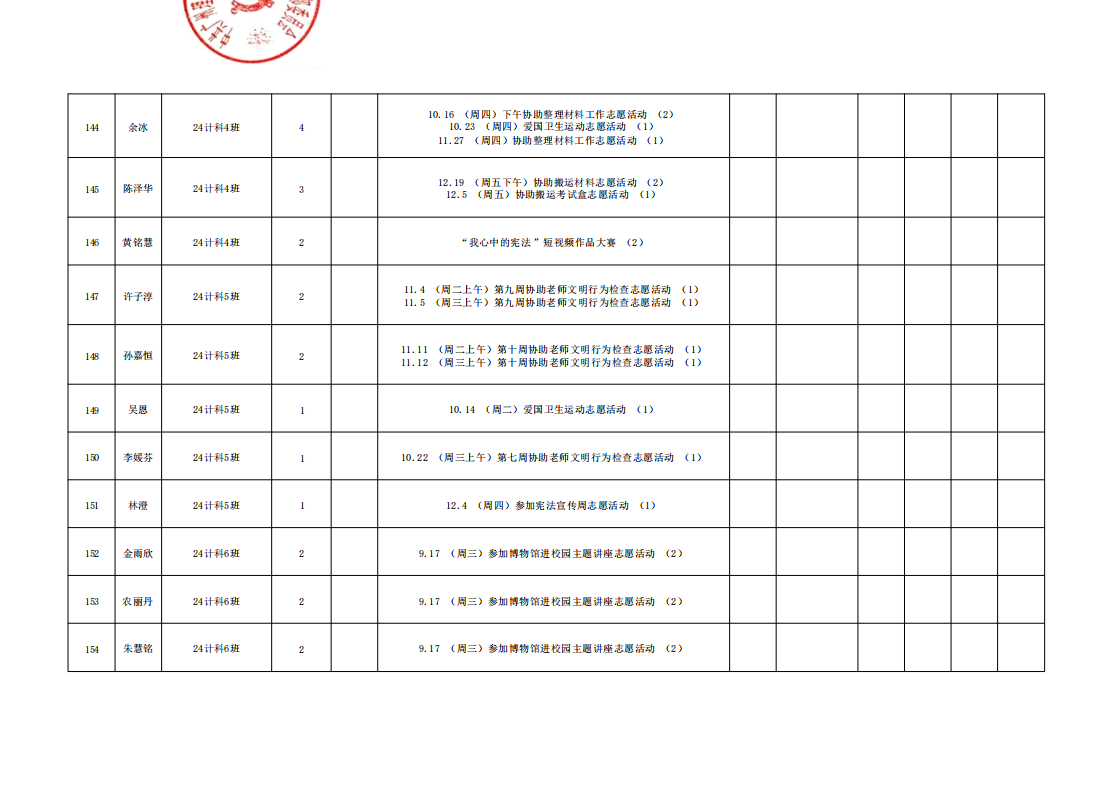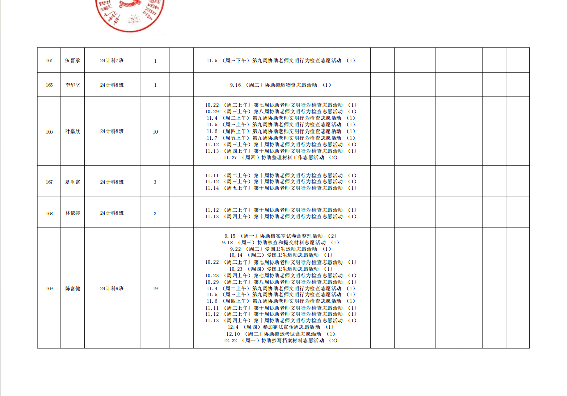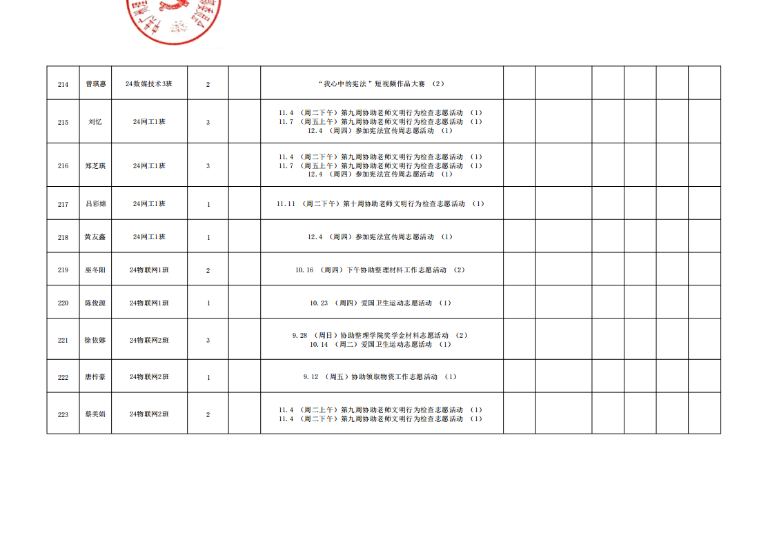 在此特别提醒:本学期综合测评加分项目为公司党建服务中心官方发出的志愿活动,其他情况不予加分认定与换算。