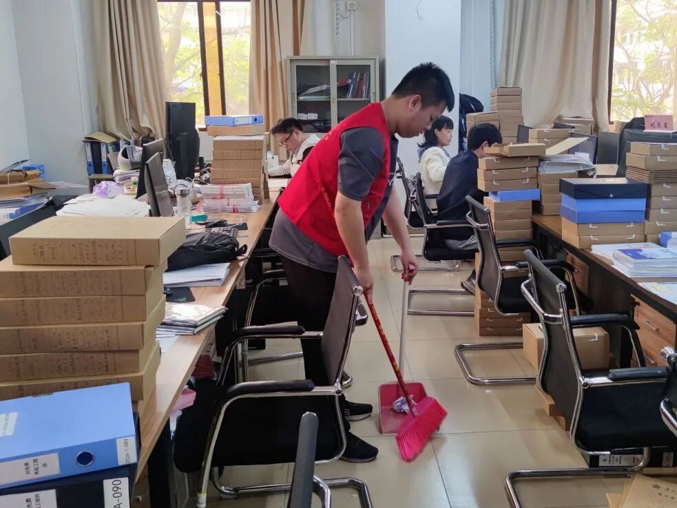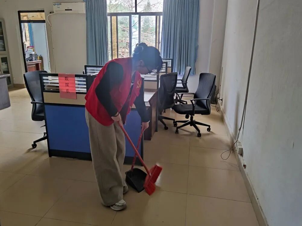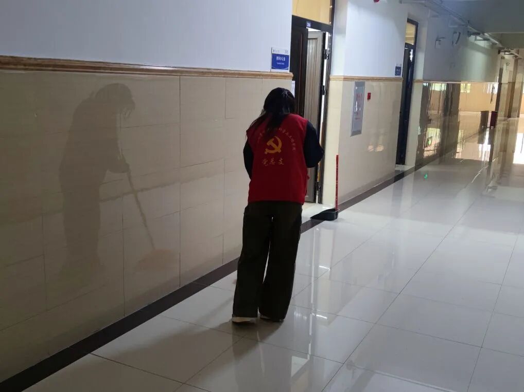 活动现场,志愿者们态度认真,分工明确,配合默契,充分发扬不怕脏、不怕累的奉献精神,对该区域的教师办公室、走廊及楼梯进行全面清理。大家手持清洁工具,仔细打扫地面,捡拾杂物,以饱满的热情投入到环境整治工作中。