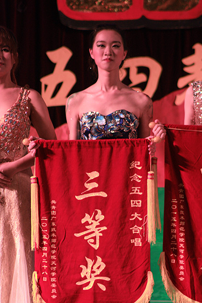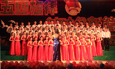 我系五四合唱队于第5顺位闪亮登场,身穿统一的红色礼服和白色正装,光鲜亮丽的面孔象征着爱国与青春,嘹亮的歌声激昂人心,必选曲目《在灿烂的阳光下》和自选曲目《让世界赞美你》使比赛立即进入高潮。各系形式多样多彩,群芳竞艳,用歌声传递五四精神,用行动接过五四的旗帜,为全院师生带来一场完美的音乐盛宴。