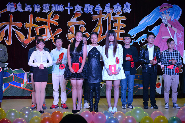 开场以炫舞流协会的舞蹈带动全场气氛,主持人宣布比赛正式开始。此次决赛分为两个环节:一是由选手两两配对进行合唱;二是个人演唱环节。选手们风格不一的曲风和唱调,调动了在场观众的热情气氛,赢得了观众们热烈的掌声。比赛中的抽奖环节更是将气氛推到了顶峰。待各位选手演唱完毕,评委们根据选手们的情感、唱功、形象台风给出相应的分数。最后,比赛结果如下: