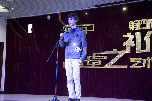 (我系参赛选手卢佑炜在进行自我介绍 )
