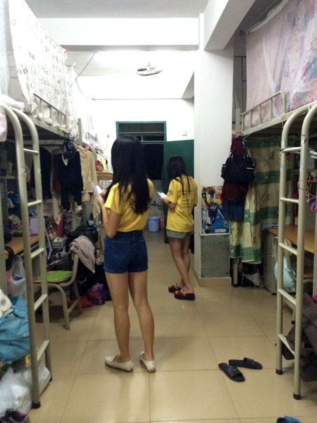 (图一:检查人员敲门进宿舍检查)