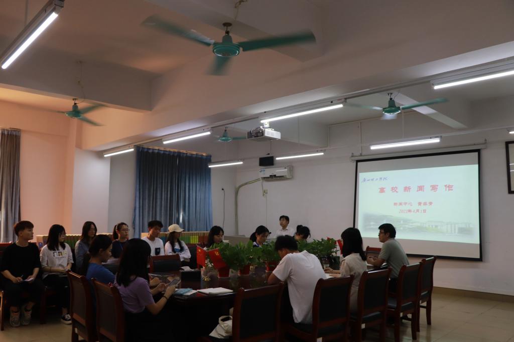 4月1日下午,新闻中心主任黄菲青老师应邀来公司给师生进行新闻写作培训。公司党总支副书记蔡岳良、分管宣传工作的老师、员工会宣传部干事和员工党支部宣传委员等一起参加了培训。