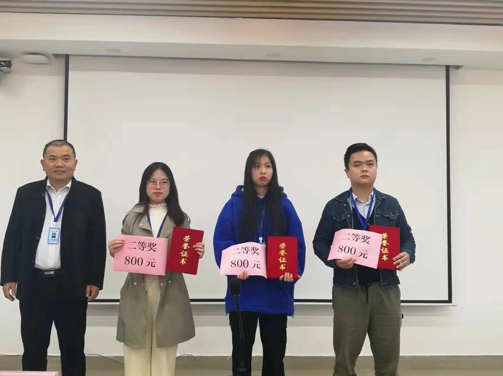 2021年员工思政工作论文凌诗慧老师(左二)、陈健老师(右一)获得三等奖