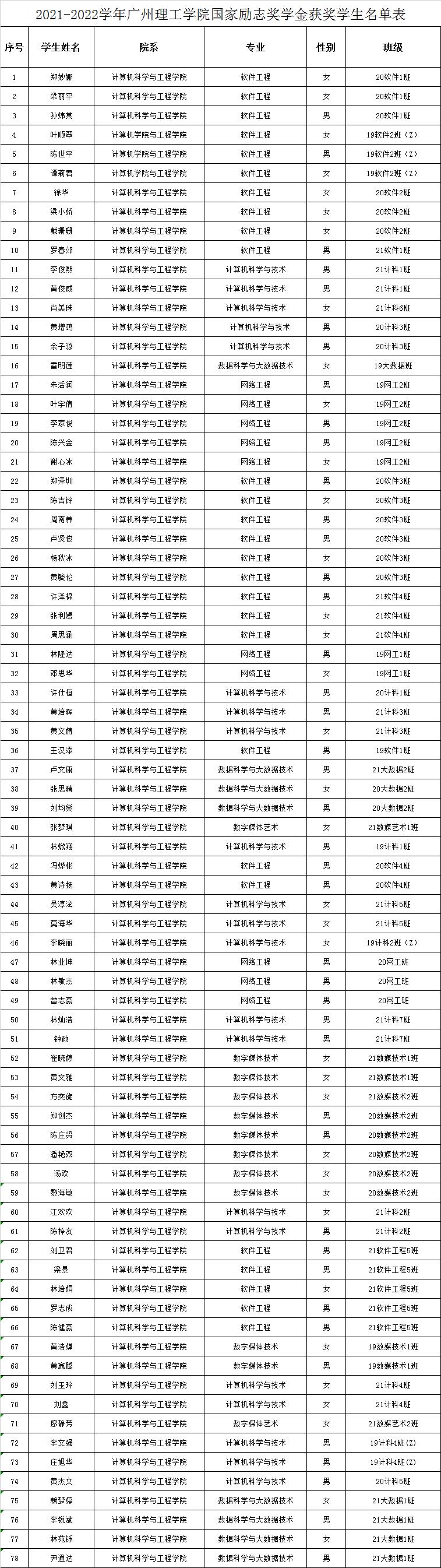国家励志奖学金获奖名单公示