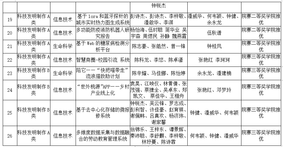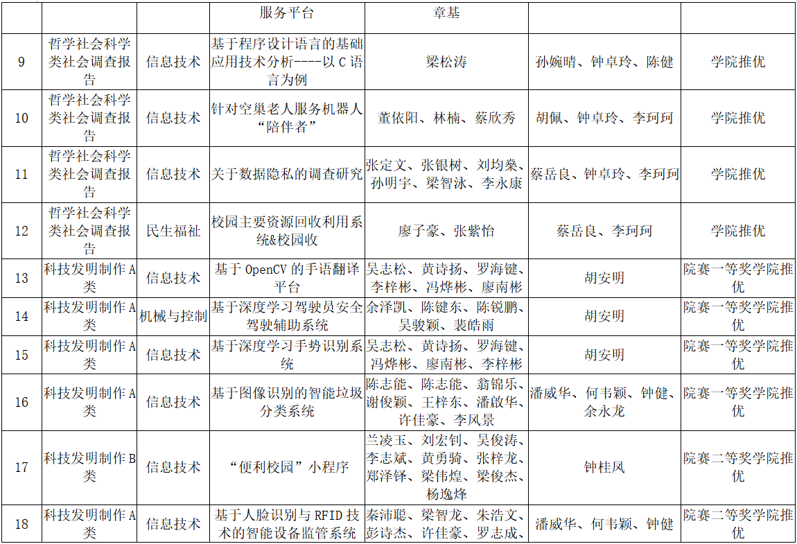 现将推荐参加校赛作品名单进行公示,公示时间为:2023年3月5日-2023年3月9日。如有异议,请于公示期内向团总支书记钟卓玲反映:
