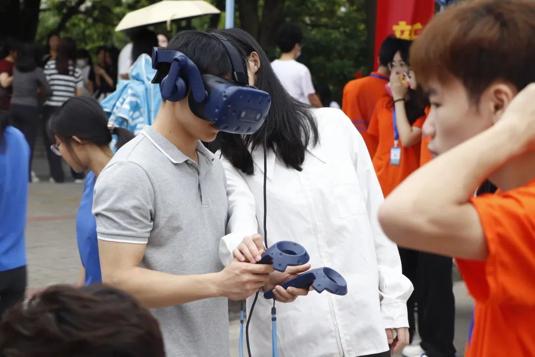 为了让同学们更加直观地体验到科技的魅力,公司将优秀同学作品带到了现场,供同学们参观体验。其中,VR项目深受大家的喜爱,吸引了大批同学驻足体验与观看。