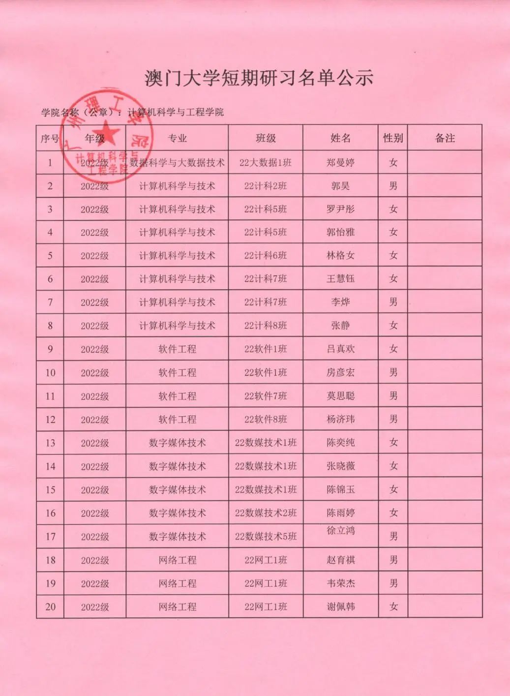 根据公司《关于选派优秀员工赴澳门大学短期研习的通知》的文件精神,“员工个人申请,二级公司审核推荐,按照公平、公开、公正的原则,现将评比结果予以公示,公示期为2023年10月20日至10月24日。若对公示有异议,请以书面形式向以下受理部门反映,反映情况时请署名真实姓名和联系电话,不签署真实姓名或不提供具体事实材料的,将不予受理。