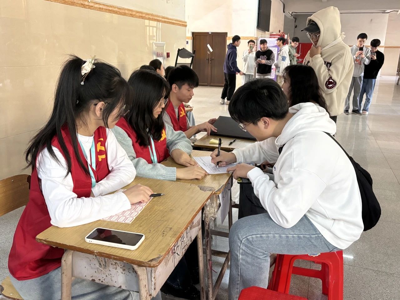 此次义务维修服务项目主要包括病毒杀除、系统重装、系统黑屏蓝屏、系统激活、软件安装、系统优化、硬盘分区、软件和外设无法正常使用、系统故障排除及解决。活动过程中,志愿者们和员工党支部成员有礼貌地接待来进行维修的同学,细心且负责的对接收的电脑进行登记以及维修,老师和同学们陆续带着需要维修的电脑前来登记,维修人员仔细检查,分析每台计算机存在的问题并利用自己的专业知识解决。无论是登记处还是维修处的工作人员都按部就班,有条不紊地忙碌着。