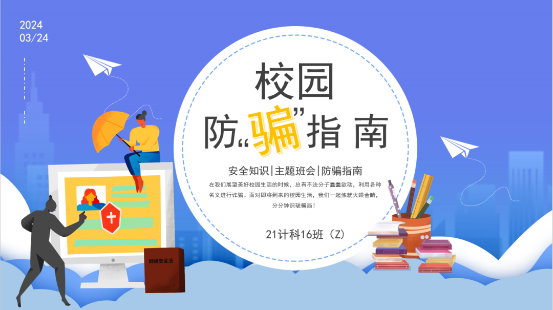 (通讯员:王敏)为进一步加强对员工的防诈骗安全教育,提高员工的防诈骗的意识和能力,构建和谐平安校园,3月24日晚,公司21计科16班(Z)于12栋916室开展了防诈骗主题教育班会。