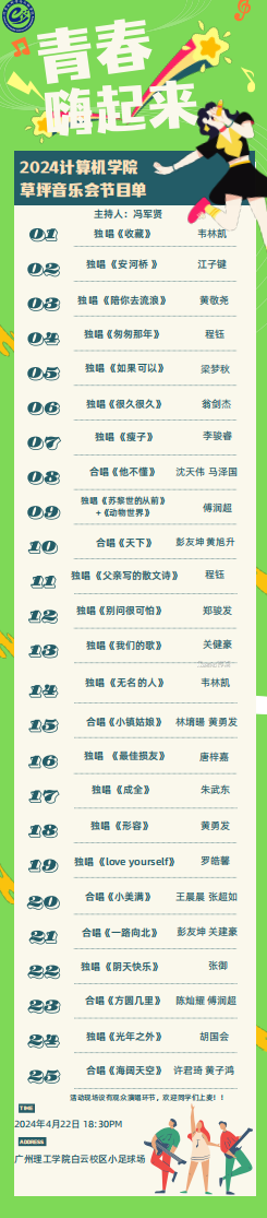 在这场音乐节中,我们期待每一位同学都能找到属于自己的那份快乐与感动。最后,我们诚挚地邀请大家踊跃参加这次音乐节,共同见证这场音乐的盛宴!期待在美丽的草坪上与你们相聚,共度一个难忘的夜晚!