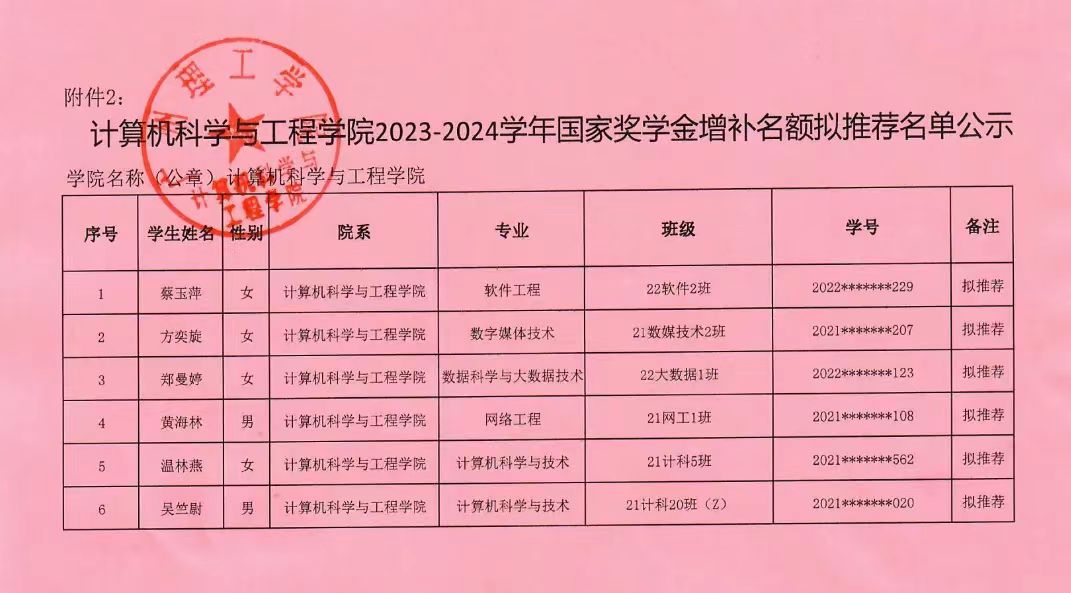 根据《2023-2024学年奖学金评比工作方案》(伟德国际victor1946函〔2024〕148号)及上级相关文件要求,公司开展国家奖学金增补工作。经员工本人提出申请、辅导员初审、二级公司严格评选等程序,现将得2023-2024学年国家奖学金增补的蔡玉萍等6位同学名单予以公示。