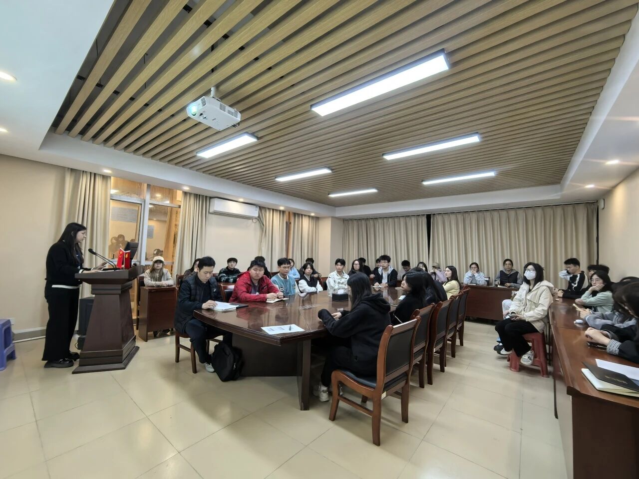 会议第一项议程,林嘉颖老师围绕就业信息填报工作展开专题培训。林老师结合全国高校毕业生就业监测与服务工作要求,以“理论讲解+案例分析”的方式,对就业系统操作流程、填报规范、数据审核要点等核心内容进行了详细拆解。针对毕业生普遍关注的毕业去向登记、签约信息填写、证明材料提交等关键环节,林老师逐一进行演示说明,并重点梳理了往年填报工作中出现的信息疏漏、类型界定模糊等典型问题,现场解答了同学们提出的各类疑问,确保每位毕业生都能熟练掌握填报技巧,保障就业信息填报的准确性与规范性。