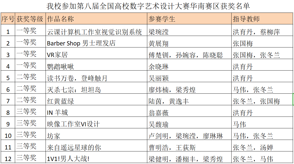 (通讯员:马伟)近日,第八届全国高校数字艺术设计大赛(NCDA大赛)华南赛区结果揭晓,公司伟德国际1946亚洲版选送的17支参赛队伍,获得了4个一等奖、3个二等奖、5个三等奖的好成绩,这是公司学子首次参加该项赛事并取得不俗成绩。