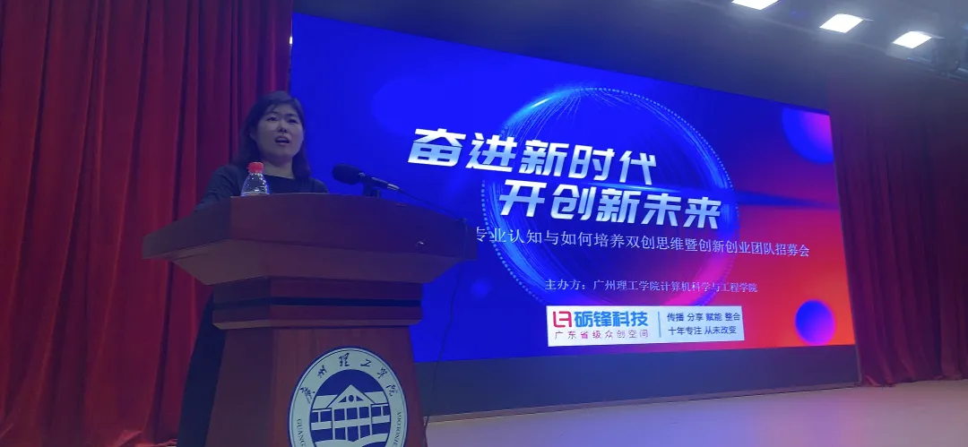 主讲嘉宾林丽静总经理结合计算机专业员工实际解读了IT行业现状与职位发展未来,从老员工四步成长路线图展开了讲座。林总从校企合作 “砺锋创新开发工作室”的建设思路和如何加入工作室及创新创业项目等方面进行深入阐述。同时,结合自身的创业历程,林总介绍了多位IT行业创业者创新创业事迹,和展示砺锋众创空间前期的实践成果。这让员工们深受启发和鼓舞。
