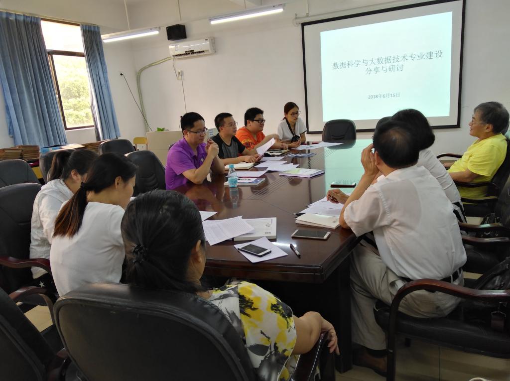 会议重点讨论了2018届“数据科学与大数据技术”专业人才培养方案,与会人员对照“计算机类专业教学质量国标”和几所高校的参考方案,对小组制定的方案进行了充分的讨论。原峰山经理首先提出方案的制定务必要按照“国标”、人才培养要求和方案规范来进行,要充分结合公司实际和公司培养特色,切实围绕社会发展需求,强调规范、应用型特色;谭汉松教授从学科发展的角度提出大数据专业具有多学科、交叉学科的特点,发展前景好,对数学、统计学等知识的要求比其它专业更高,应适当增加相关课程的学时,培养员工良好的数学和统计学基础;谌颃、孔令美、樊继慧、陈智勇、胡安明、钟桂凤、张艳红等老师就核心课程设置、专业方向课、课程先后顺序、实践教学名称规范、学时学分、素质拓展课等问题展开了热烈的讨论。通过本次讨论,进一步修订完善了数据科学与大数据技术专业的人才培养方案,提出了很多可操作性强适应前沿团队建设的修订意见,下一步将提交给专业指导委员会讨论。