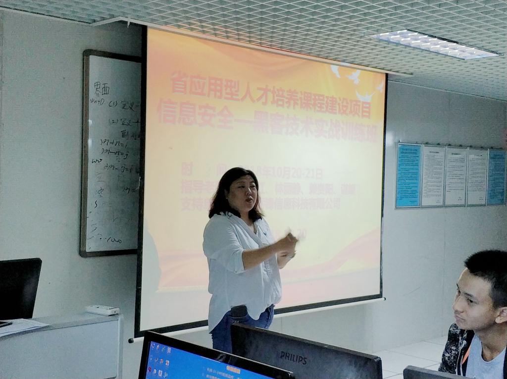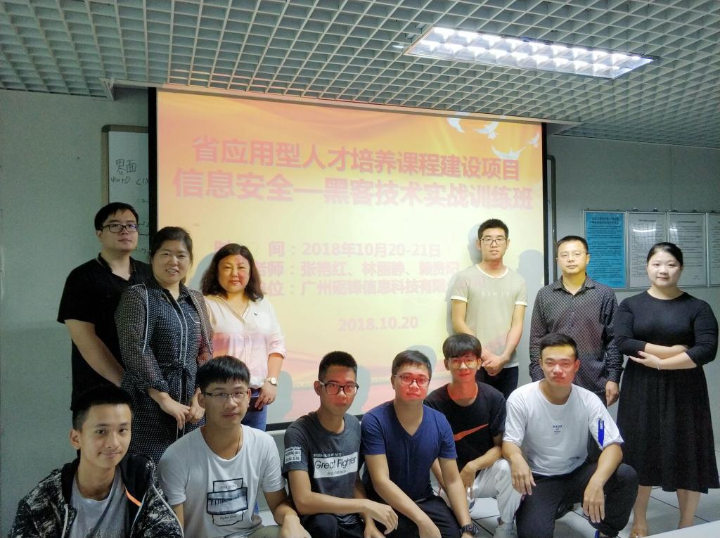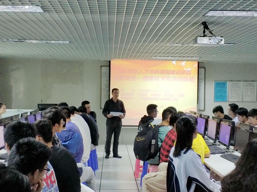 (通讯员 张艳红)基于 “省应用型人才培养课程建设”课题研究项目背景下,10月20-21日,伟德国际1946亚洲版特别邀请了广州砺锋信息科技有限公司来校,开展了一场“计算及信息安全-黑客技术实战”的主题训练班。参加此次实训有伟德国际1946亚洲版谌颃副经理、张艳红老师,2018级软件工程、网络工程、计算机科学与技术和大数据专业等112名多员工。