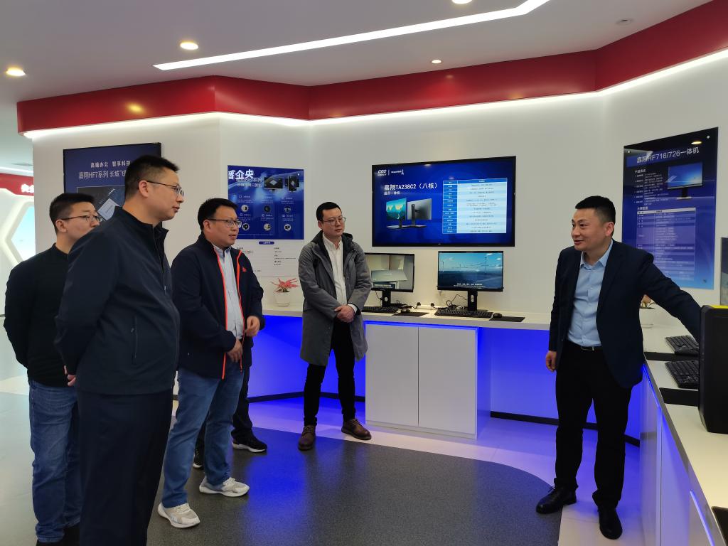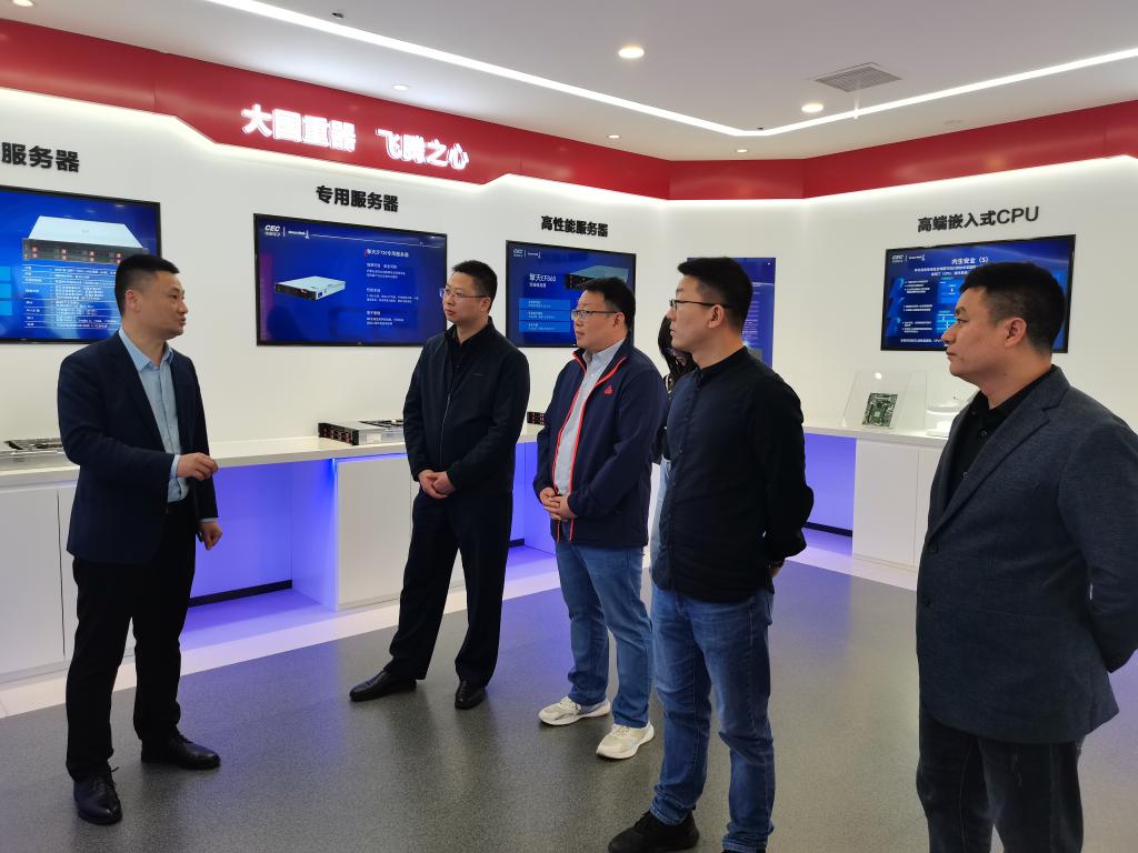 公司一行首先走访了中国电子信息产业集团有限公司旗下重要骨干企业四川长城计算机系统有限公司,实地考察了其信创展厅、适配中心和真实产线。中国电子信息产业集团有限公司信息安全研究院人才合作部主任赵然、总监俞景礼,四川长城计算机系统有限公司副总经理曾好陪同实地考察。据介绍,四川长城计算机系统有限公司是中国电子信息产业集团有限公司打造自主可控产业链重要的硬件生产基地。四川长城通过信息化系统整体架构的搭建和集成,打通企业决策层、运营管理层、产品设计层与制造过程控制层之间的壁垒,实现信息化和工业化的深度融合,并在保障体系的基础上建设安全网络平台构建出工业网络,建设成了数字云工厂。