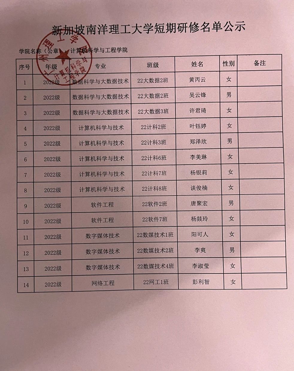 根据公司《关于选派优秀员工赴新加坡南洋理工大学短期研修的通知》的文件精神,“员工个人申请,二级公司审核推荐,按照公平、公开、公正的原则”,现将评比结果予以公示,公示期为2023年10月24日至2023年10月26日。若对公示有异议,请以书面形式向以下受理部门反映,反映情况时请签署真实姓名和联系电话,不签署真实姓名或不提供具体事实材料的,将不予受理。