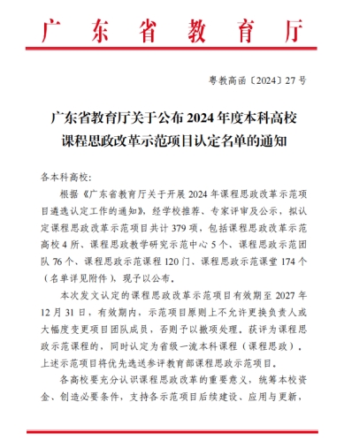 (通讯员:陈绪杨)近日,根据《广东省教育厅关于开展2024年课程思政改革示范项目遴选认定工作的通知》,经过公司推荐、专家评审及公示等严格程序,公司“人工智能课程群课程思政示范团队”成功获批为2024年度本科高校课程思政改革示范团队。此次认定是对公司在课程思政改革方面所取得成绩的充分肯定,也标志着公司在课程建设方面迈出了坚实的步伐。