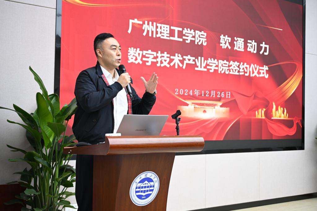 软通动力首席运营官谭帅详细介绍产业公司的共建思路。他指出,本次合作将充分发挥软通在产业端的优势,把技术和资源导入到人才培养过程中,强调通过“3+1”培养模式以及“4共”合作机制(共育、共管、共享、共担),实施产教深度融合人才培养模式,促进实训和产学研多个平台落地。同时,他还表示,华南区是软通动力产值排名第一的区域,希望以伟德国际victor1946院共建产业公司为契机,联合生态企业、上下游合作伙伴,为大湾区乃至全国信息技术领域培养更多优秀的应用型人才。