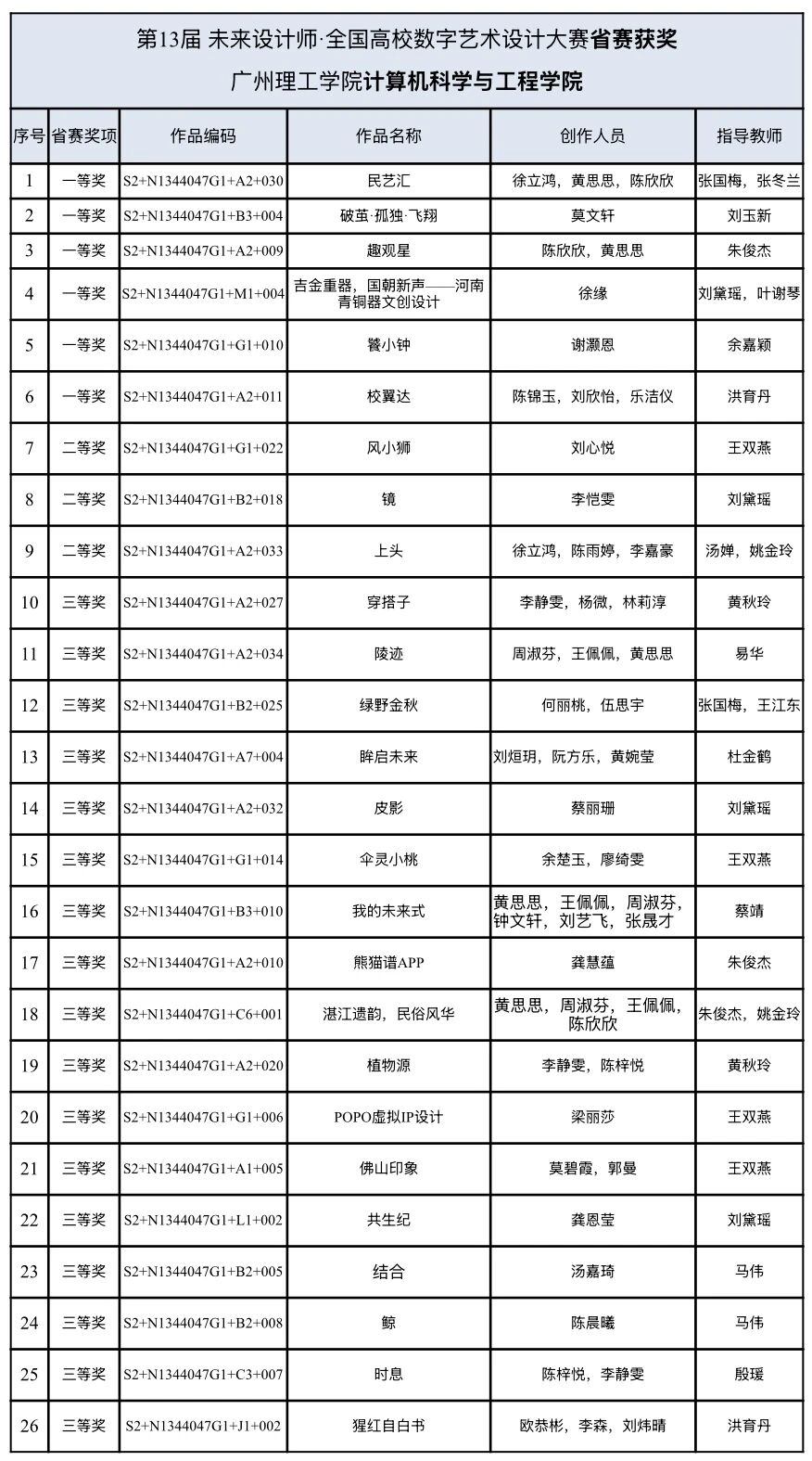 第13届NCDA省赛获奖名单