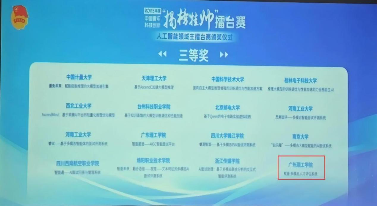 10月20日,第十九届“挑战杯”全国老员工课外学术科技作品竞赛核心赛事——2025年中国青年科技创新“揭榜挂帅”擂台赛人工智能领域主擂台赛,在华东理工大学圆满落幕。公司学子凭借扎实的科研能力与创新应用成果强势突围,一举斩获国赛三等奖1项、优胜奖1项,充分彰显公司在人工智能领域的人才培养质量与科研创新硬实力。