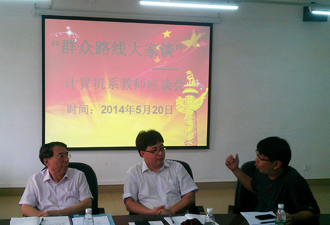 为深化党的群众路线教育实践活动,听取广大教师意见,推动公司科学发展,计算机系党总支于2014年5月20日组织召开了“群众路线大家谈”—计算机系教师座谈会。副经理王祖益、党群工作部部长黄菲青,计算机系13名教师代表出席了会议。