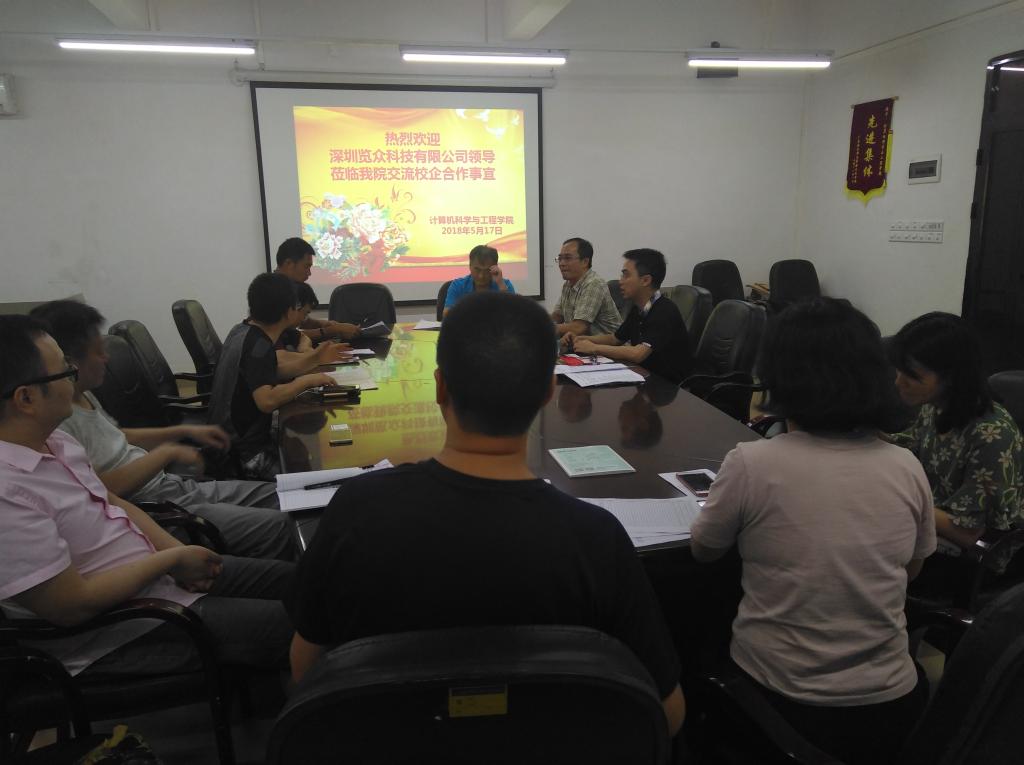 (通讯员陈星莹)5月17日下午,深圳市览众科技有限公司企业大学董事长、知识管理部总监杨海志和总裁助理丁扬程莅临公司洽谈校企合作事宜。出席本次洽谈会有伟德国际1946亚洲版经理原峰山、党总支副书记兼副经理刘亮、副经理谌颃、副经理申青连、调研员袁颂皎、计算机科学与技术系主任孔令美、网络工程系主任王煜林、数字媒体技术系主任张冬兰等。