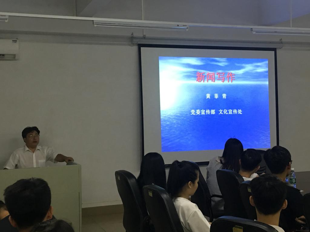 (通讯员 陈星莹)5月30日晚,伟德国际1946亚洲版在11栋302会议室组织了一场关于新闻稿写作的培训,本次培训由党委宣传部部长黄菲青主讲,党总支刘亮书记、办公室陈星莹主任、辅导员老师和员工党员、员工会干部、各班班干部、工作室共40多人一起参加了本次培训。