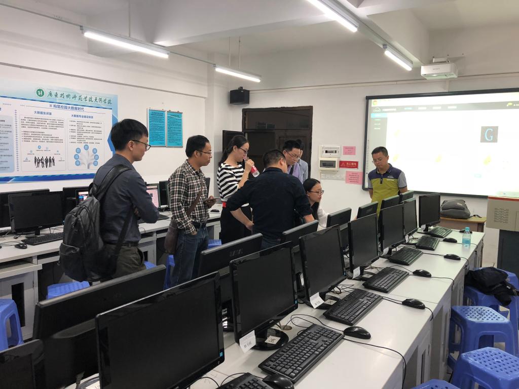 在谌副经理的带领下,周副经理一行人参观了网络中心机房及大数据实训室,在11-504实地考察了大数据实训专业建设课程及三盟大数据实训平台,对公司大数据专业建设效果表示高度认同。双方均希望两个公司进一步加强学习交流,在科研、专业建设、实践教学方面争取长效合作。