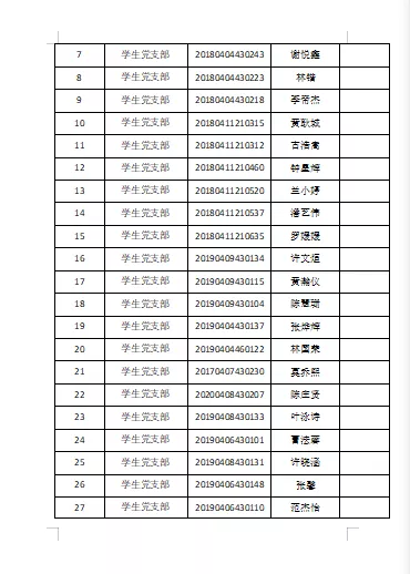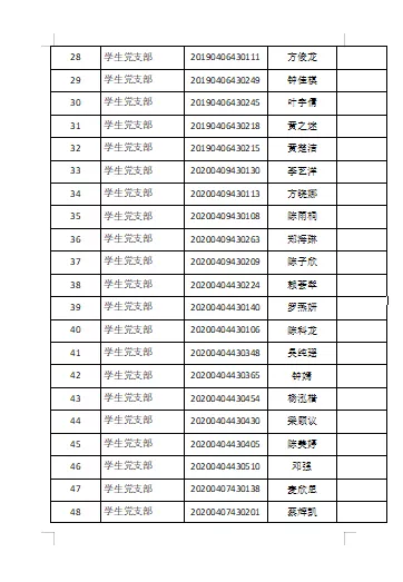 经党组织一年以上的培养教育和考察,罗韵麟等65位同志被列为党员发展对象,党支部拟在近期召开党员大会讨论他们的入党问题。为了进一步增强发展党员工作的透明度,确保发展新党员的质量,根据《中国共产党发展党员工作细则》等文件的有关精神,现将预备党员名单公示如下,公示期7天,自2021年10月20日至2021年10月27日止。对他们的入党问题,如有异议,请于2021年10月27日前以书面形式并署真实姓名或移步信息楼309办公室,向党支部和上级党组织反映。