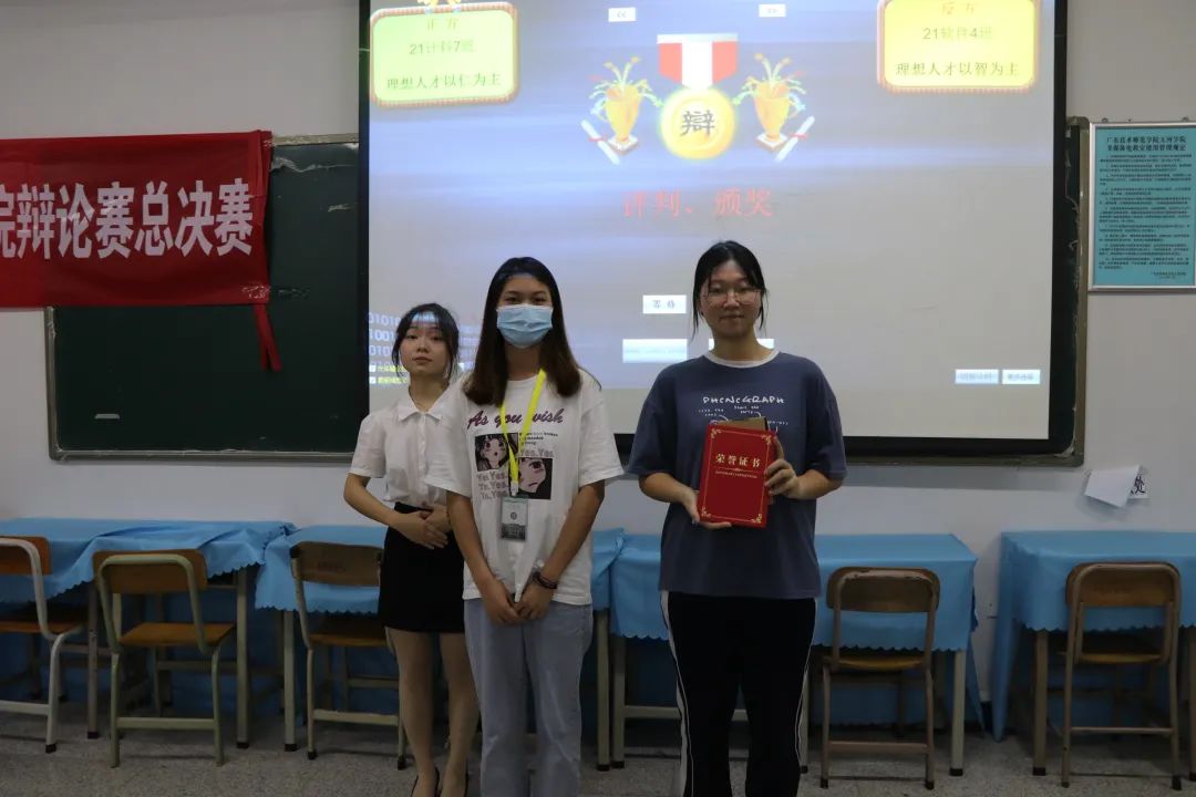 辩论赛后,设有观众提问环节,多位观众积极参与,现场气氛再一次升温 。最后,经过评委团的讨论,反方21软件4班代表队获得总决赛冠军。21软件4班谭静怡获得最佳辩手。评委覃斌杰对本次比赛进行点评,他说明了辩论是思想的碰撞与观念的交锋,让大家明智明理,他肯定双方辩手的精彩表现,也指出了他们各自的不足。