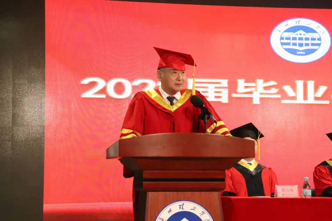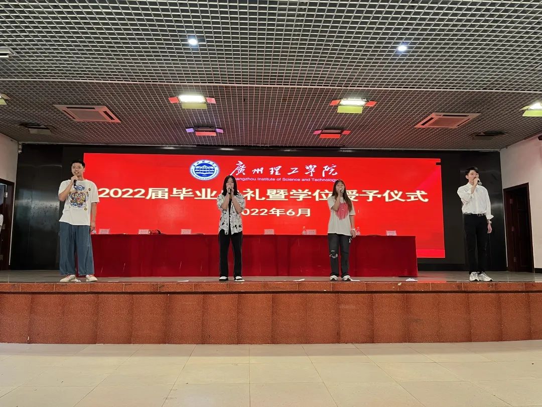 临别之际,19网工2班的林沐阳、20软工2班的谢佳豪、21数媒技术2班的庄佳仪、21数媒艺1班的程钰、21数媒技1班的董依阳、21计科1班的郭秀文和曹家静一起上台深情献唱,将对毕业生的祝福融入到歌声中,伴随着“我只想拉住流年,好好地说声再见,心中刻下你们的笑脸,看流星划过天边,许下我们的心愿……”的歌声,毕业典礼拉下帷幕。