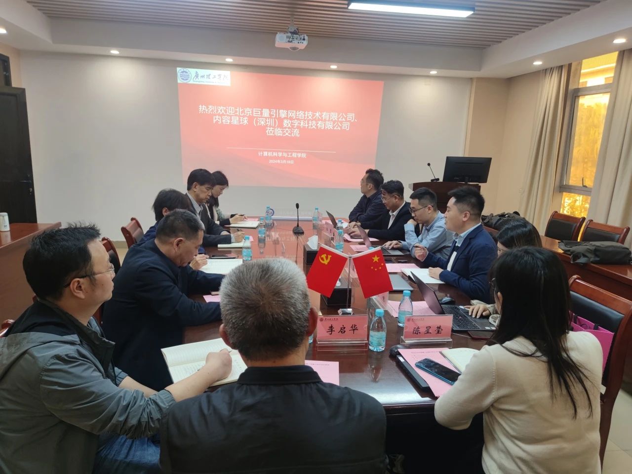 (通讯员:陈星莹)3月19日下午,北京巨量引擎网络技术有限公司认证运营总监曹磊、华南区域运营负责人李根、华中区域运营负责人朱咪,和其合作企业内容星球(深圳)数字科技有限公司总经理邢亮、CEO伍黎等一行到伟德国际1946亚洲版展开校企合作交流。伟德国际victor1946院副董事长张世梅、教学管理部部长石玉强,伟德国际1946亚洲版的院领导班子和系主任等参加了交流。