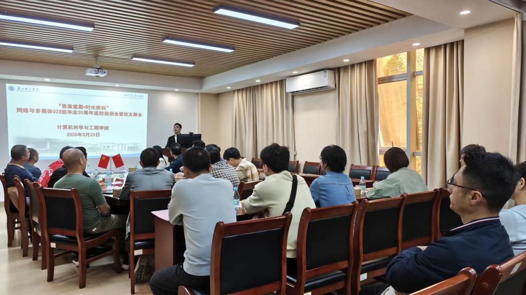 (通讯员:张静、李欣)3月23日,四号教学楼303会议室内暖意融融,网络与多媒体023班20余位员工跨越山海重聚母校,以一场充满科技情怀的"像素重聚·时光解码"主题活动,共同开启毕业二十周年的时光密钥。