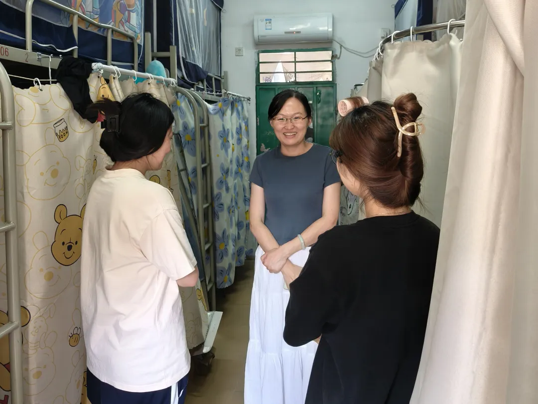 在宿舍里,班导师们不再是讲台上的严师,而是化身为知心朋友,与同学们围坐一堂,畅聊学习、探讨生活、展望未来。话题从课程难点延伸至职业规划,从宿舍趣事拓展到个人兴趣,轻松而充实。导师们耐心聆听每位同学的见解,并分享了宝贵的人生经验与建议,使得这场交流既有温度,又有深度。在轻松愉悦的氛围中,班导师们依然高度重视宿舍安全。他们提醒同学们严格遵守用电规范,同时还强调了宿舍卫生的重要性,鼓励同学们保持宿舍的整洁与美观,为自己和室友创造一个良好的学习和生活环境。安全是我们不可逾越的底线,而舒适则是我们共同追求的目标。希望同学们都能培养良好的生活习惯,携手维护这个温馨的小家。