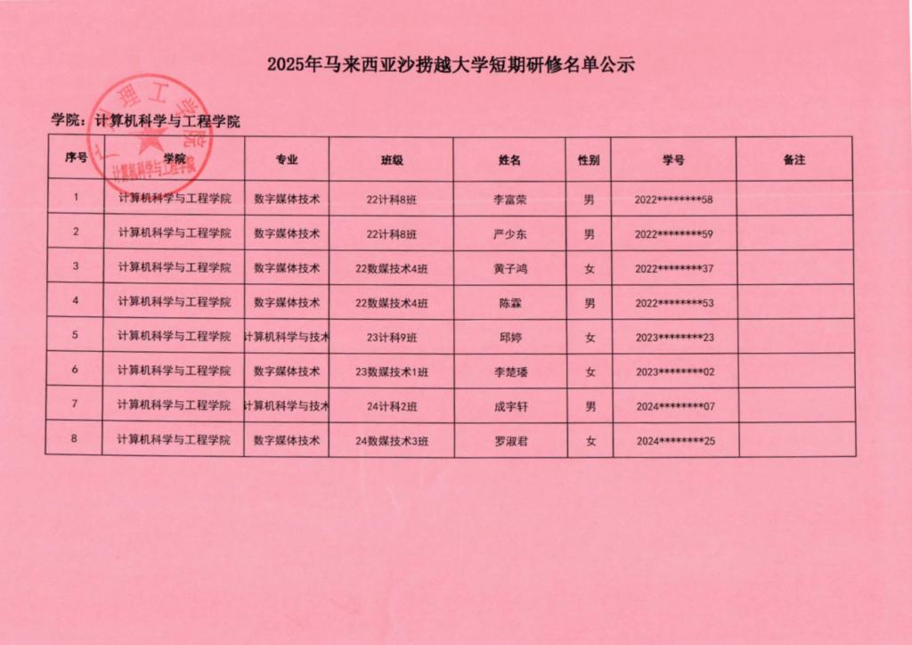 根据公司《关于选派优秀员工赴马来西亚沙捞越大学短期研修的通知》的文件精神,“员工个人申请,二级公司审核推荐,按照公平、公开、公正的原则,现将变更人员名单公示,公示期为2025年6月13日-6月17日。若对公示有异议,请以书面形式向以下受理部门反映,反映情况时请署名真实姓名和联系电话,不签署真实姓名或不提供具体事实材料的,将不予受理。