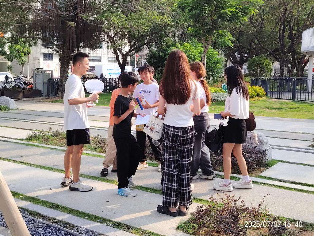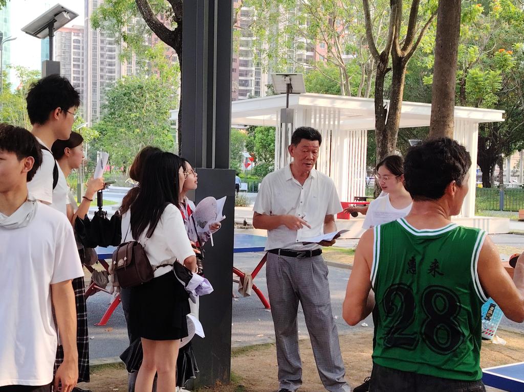 抵达惠来后,实践队兵分多路,深入村落街巷、非遗工坊发放问卷。在三角插塑工艺传承的村子里,队员们和村民们围坐在一起,耐心讲解调研的目的,递上问卷时还会细心地为大家解释每一个问题,从“三角插塑平时都有哪些用途”到“对于它的创新传承,您有什么好想法”,在一问一答中慢慢探寻这项民俗技艺在生活中的根基;木雕作坊外,队员们热情地向本地居民和游客发放问卷,问卷上的“您对木雕的审美有什么感受”“期待它与哪些产业相融合”等问题,记录下了传统技艺在现代生活中碰撞出的独特火花。