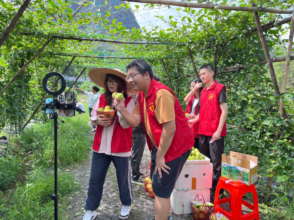 (通讯员:范晓殷)7月3日上午,伟德国际victor1946院数智助农突击队走进赤黎村地利坪百香果种植基地,以一场沉浸式助农直播为乡村振兴注入青春动能。翠绿藤蔓间,队员们用镜头架起云端桥梁,让“黄金一号”百香果的香甜从田间地头飞向全国千家万户。为确保直播效果,数智助农突击队做了大量的前期准备工作。一方面,深入农户和田间地头,通过走访调研、查阅资料等途径详细了解百香果的种植情况。另一方面,为保证直播效果,队员们在直播物资、平台搭建、直播预热等方面做了充足准备。
